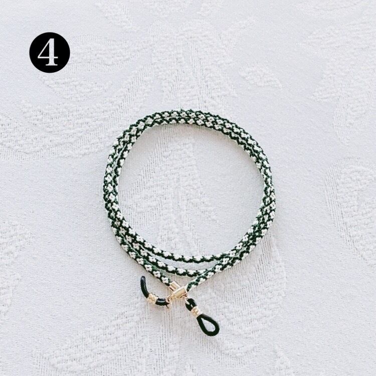 メガネの掛け外しが多い方に、又お洒落としてメガネチェーンを伝統工芸である組紐の技術で仕上げました。