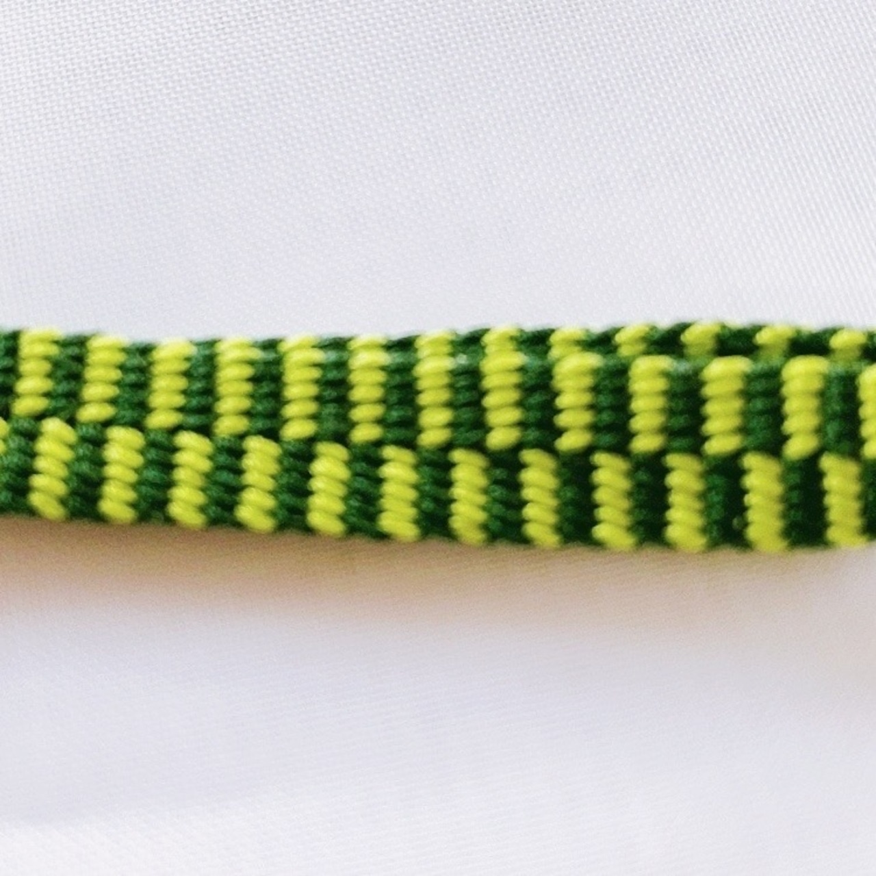 一つ一つ糸を交代に交叉しながら組んでおります。
