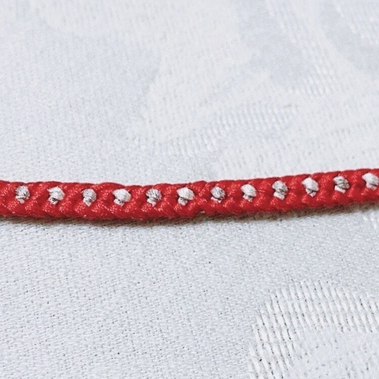 一つ一つ糸を交代に交叉しながら組んでおります。