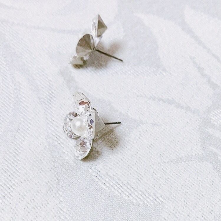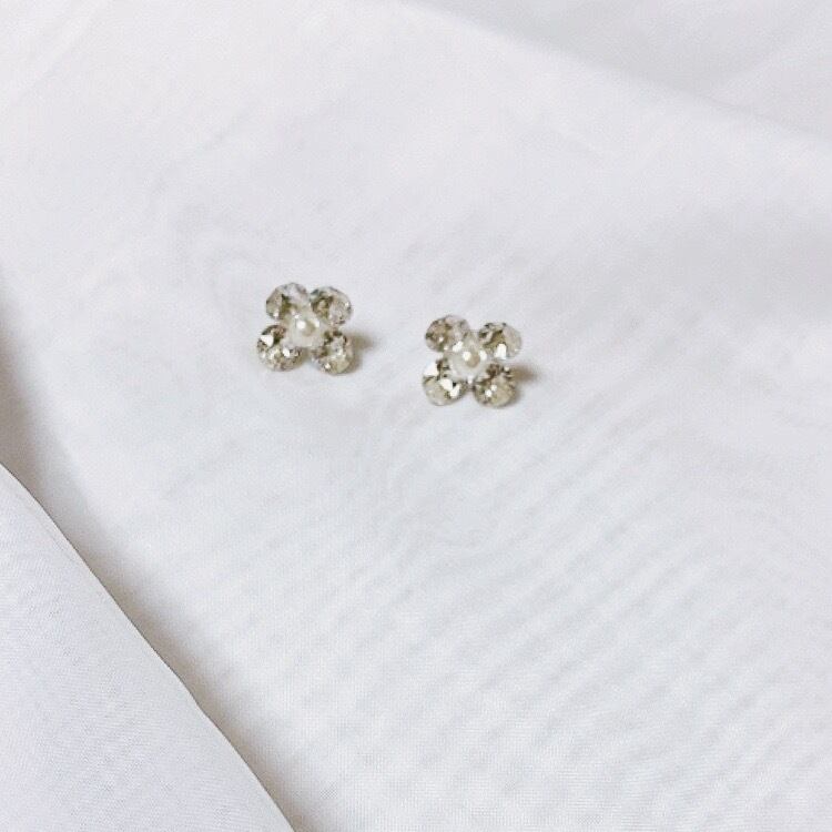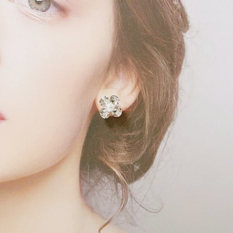 【アレルギー対応】グルーデコクリスタルお花のピアス・イヤリング