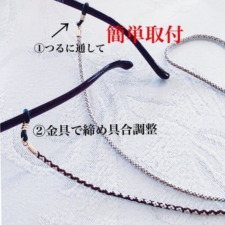 メガネの掛け外し、置き忘れの多い方又お洒落としてメガネチェーンを伝統工芸である組紐の技術で仕上げました。