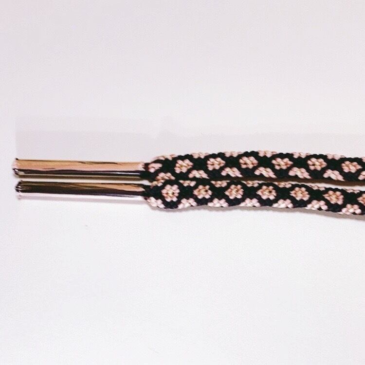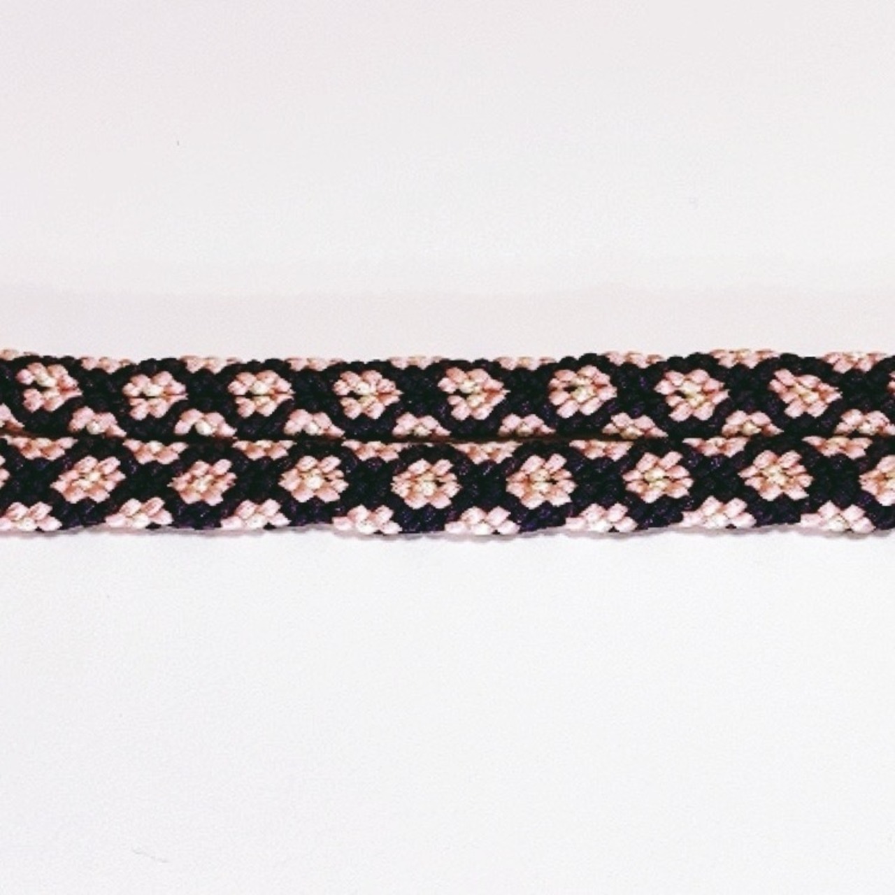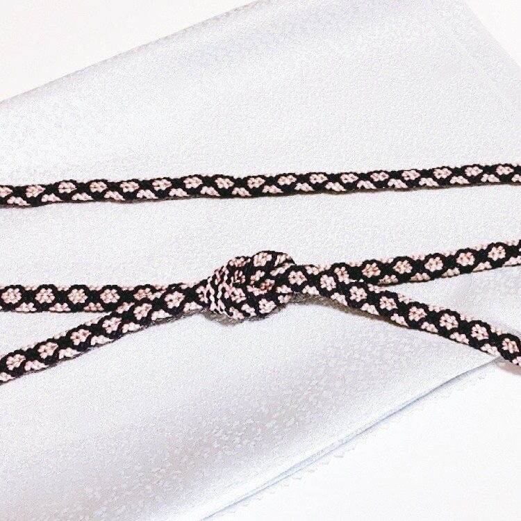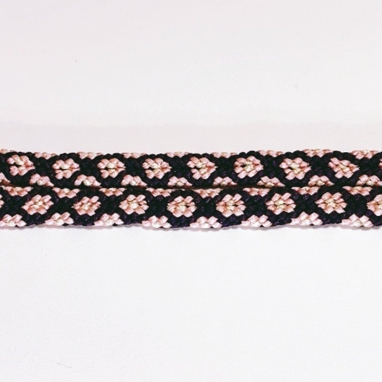 2本の組紐を縫い合わせることで、花の模様になっております。