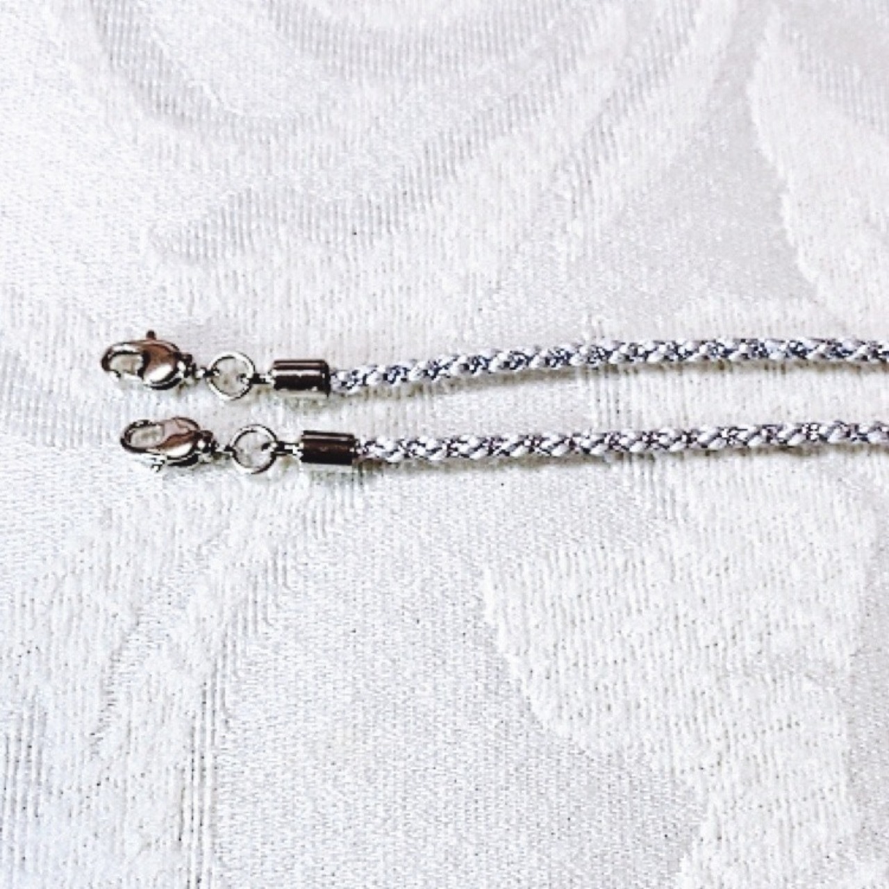 質の良い正絹の糸でつくられた手組みの紐は絹独自の艶やかな素材感、付け心地はとても軽やかで、肩こりや頭痛もちの方にも喜ばれています。また絹はお肌や衣類に優しい素材で知られています。