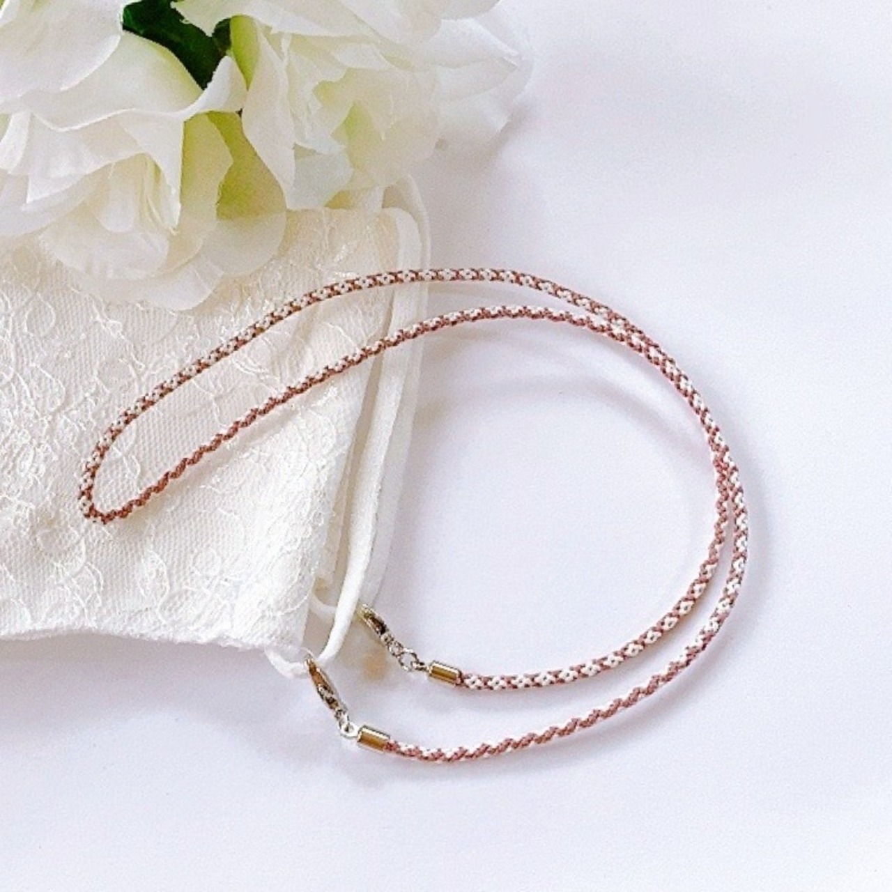 質の良い正絹の糸でつくられた手組みの紐は絹独自の艶やかな素材感、付け心地はとても軽やかで、肩こりや頭痛もちの方にも喜ばれています。また絹はお肌や衣類に優しい素材で知られています。