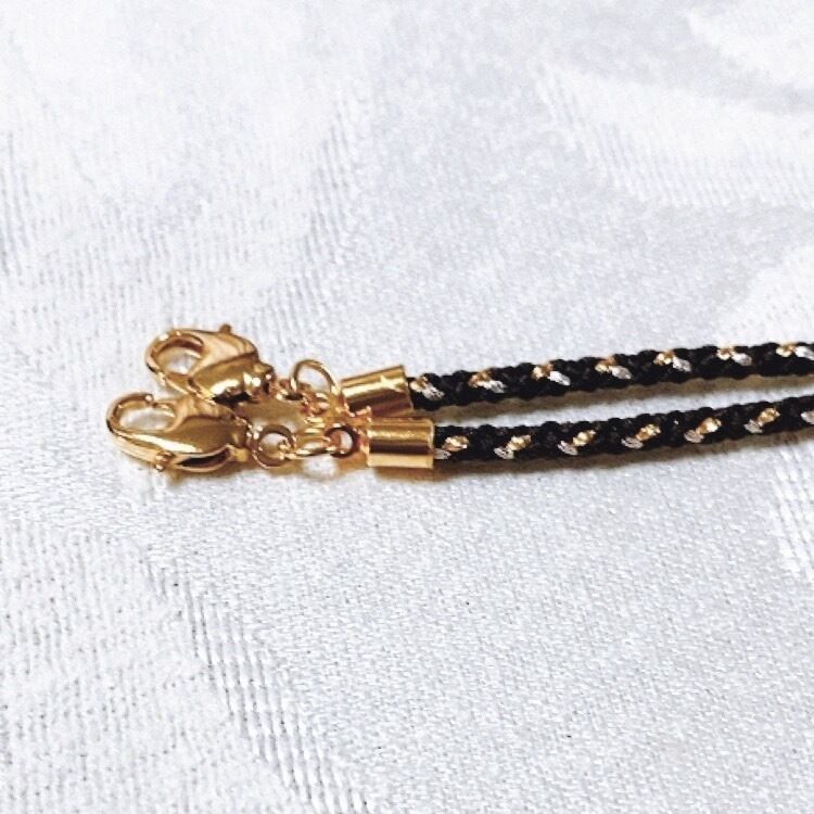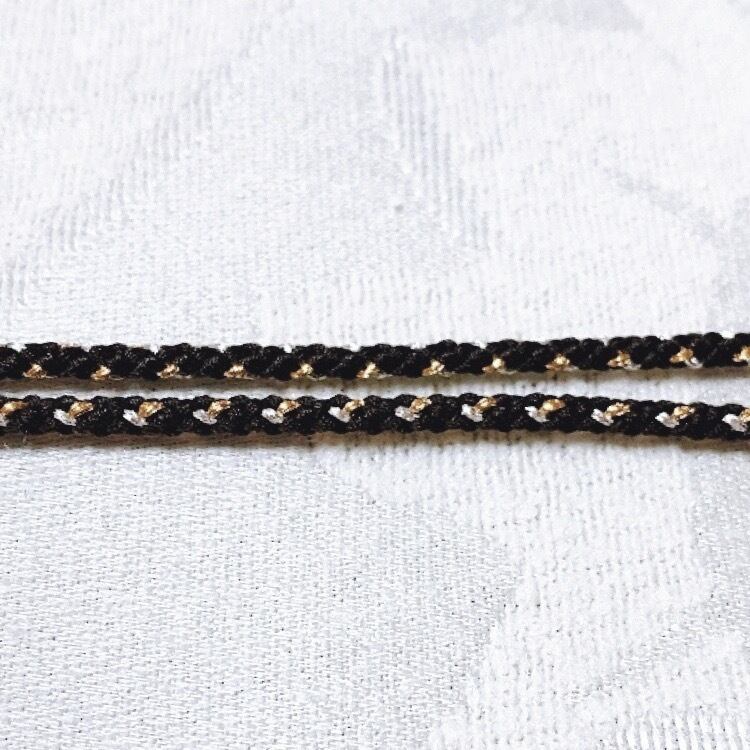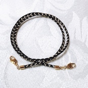 質の良い正絹の糸でつくられた手組みの紐は絹独自の艶やかな素材感、付け心地はとても軽やかで、肩こりや頭痛もちの方にも喜ばれています。また絹はお肌や衣類に優しい素材で知られています。