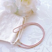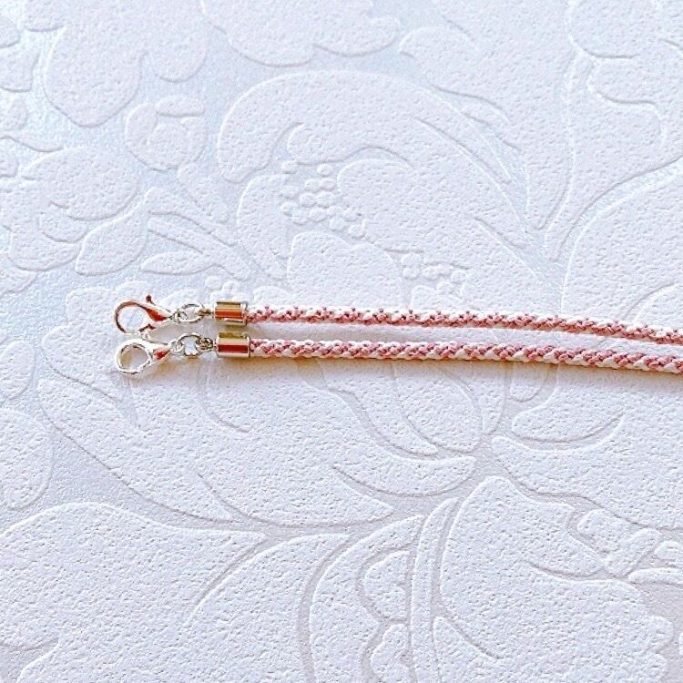 質の良い正絹の糸でつくられた手組みの紐は絹独自の艶やかな素材感、付け心地はとても軽やかで、肩こりや頭痛もちの方にも喜ばれています。また絹はお肌や衣類に優しい素材で知られています。