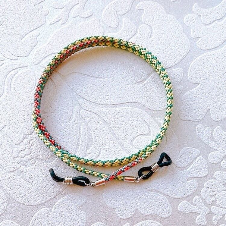 メガネチェーンを伝統工芸である組紐(くみひも)の技術で仕上げました。
