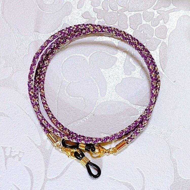 メガネの掛け外しが多い方に、又お洒落としてメガネチェーンを伝統工芸である組紐の技術で仕上げました。