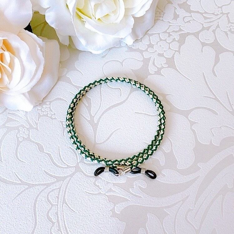 メガネチェーンを伝統工芸である組紐(くみひも)の技術で仕上げました。