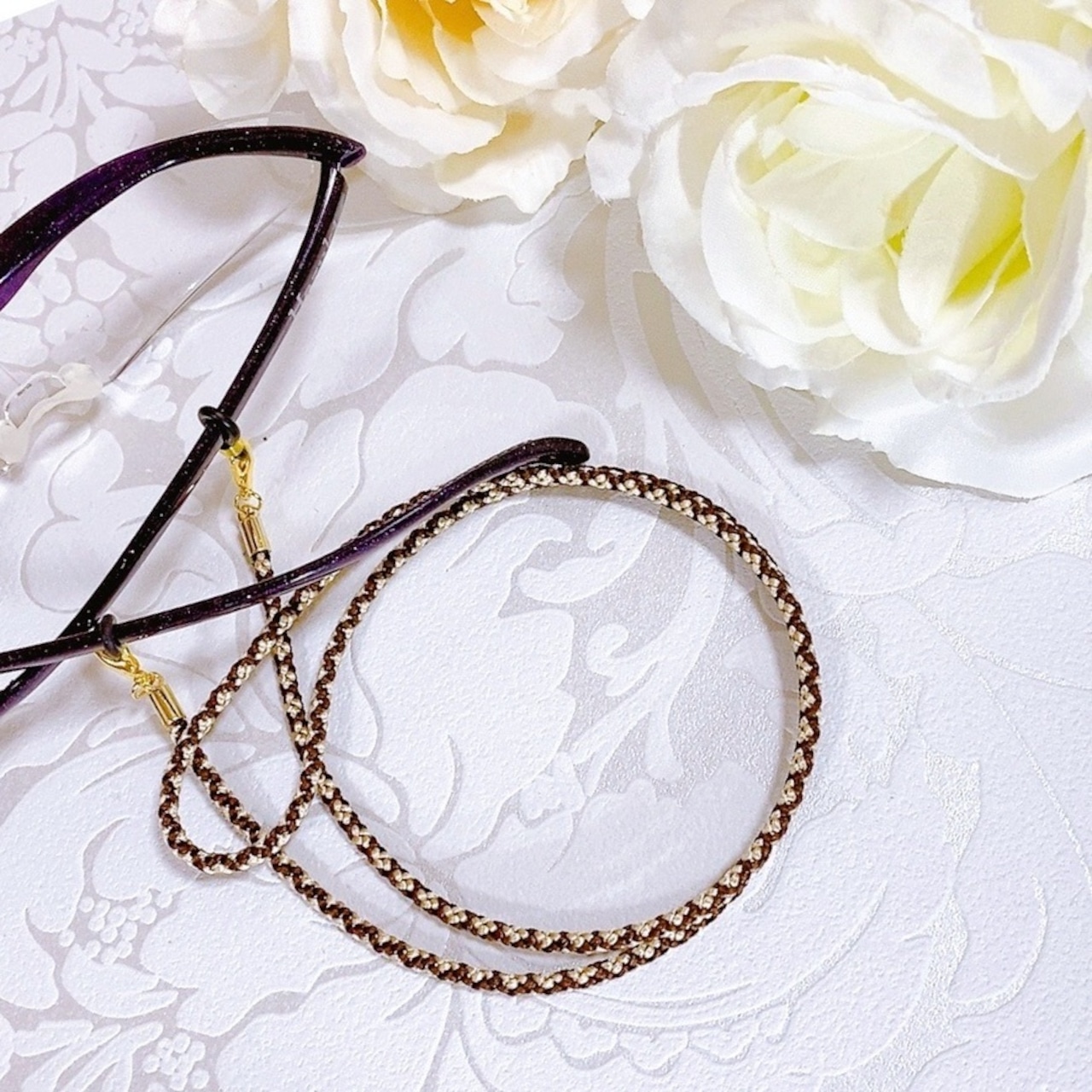 メガネの掛け外しが多い方に、又お洒落としてメガネチェーンを伝統工芸である組紐の技術で仕上げました。