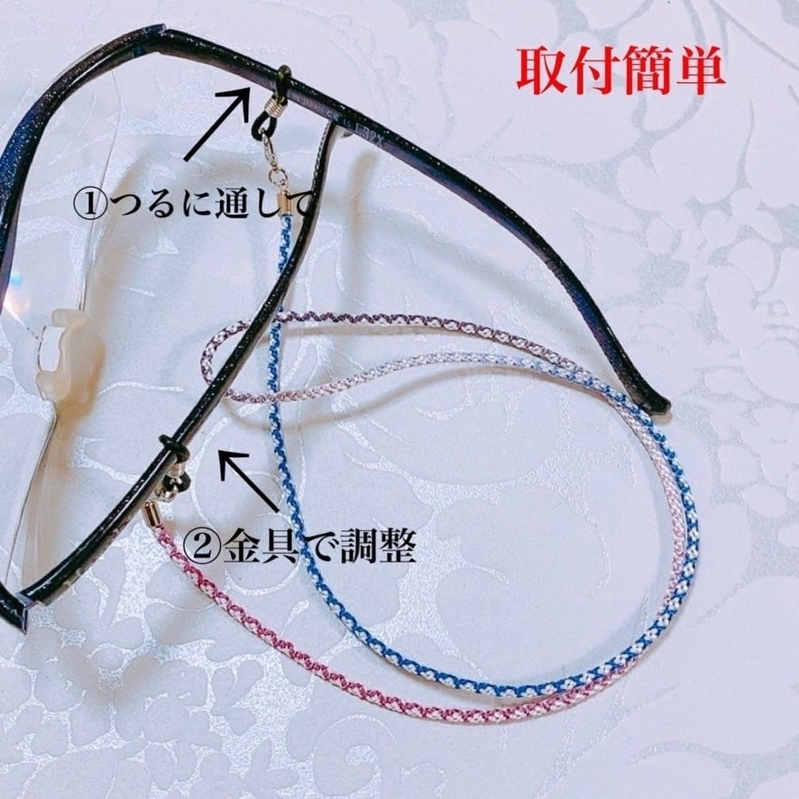 メガネの掛け外しが多い方に、又お洒落としてメガネチェーンを伝統工芸である組紐の技術で仕上げました。