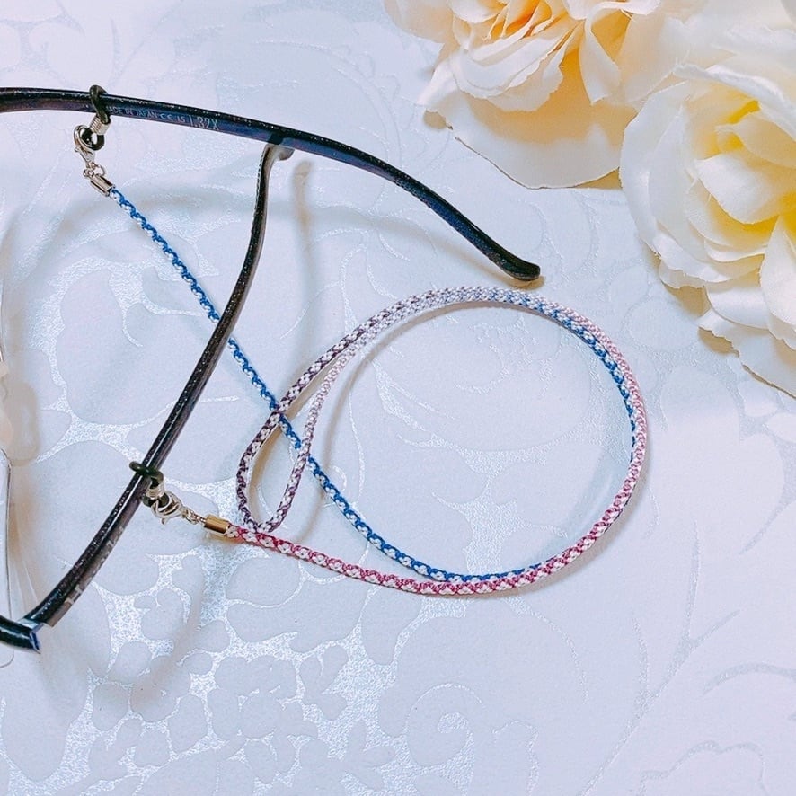 メガネチェーンを伝統工芸である組紐(くみひも)の技術で仕上げました。