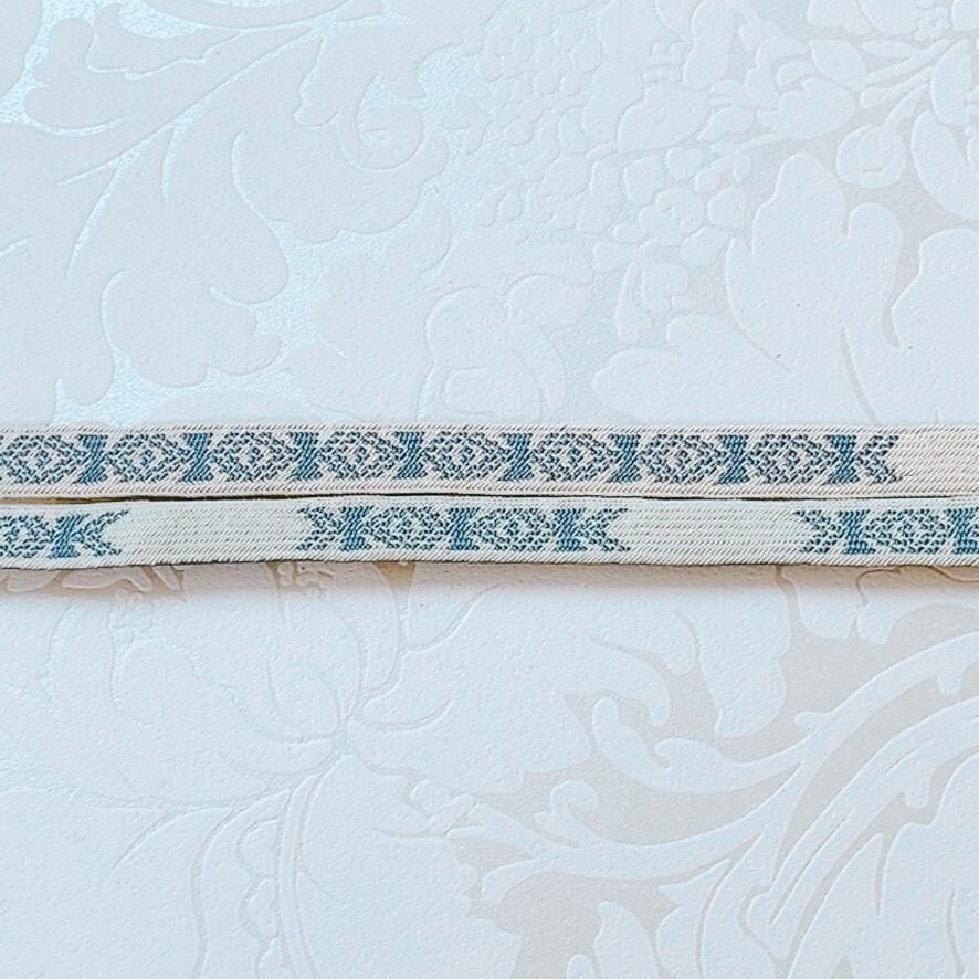 手組みの夏の帯締め「高台68玉スノーベル」。涼しげなブルーと白の組み合わせが目をひく、夏の着物スタイルには欠かせないアイテムです。