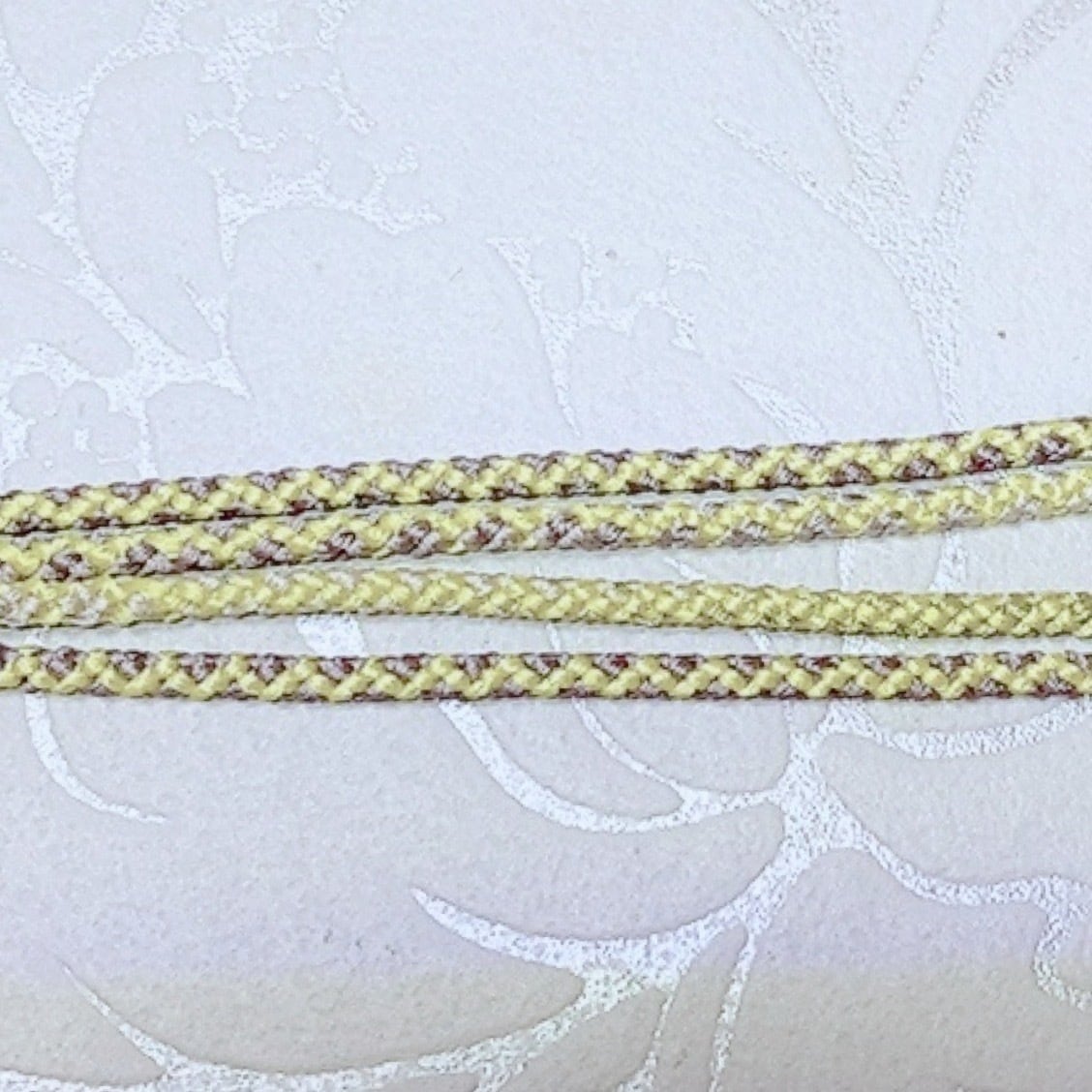 組み紐が黄緑色とグレーのぼかし糸で彩られており、個性的なデザインが魅力です。絶妙な色使いが、普段のコーディネートにさりげないアクセントをプラスしてくれます。