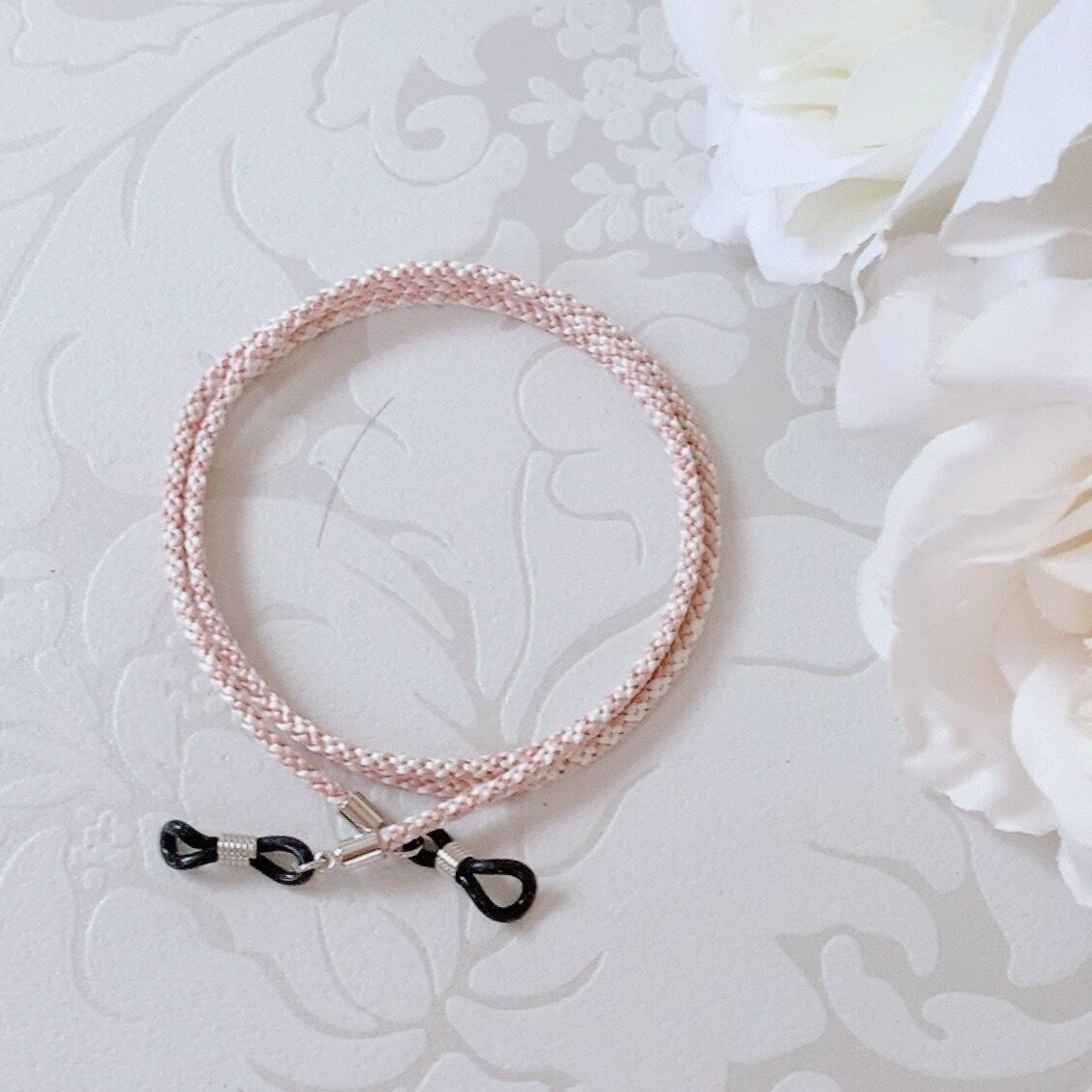 メガネチェーンを伝統工芸である組紐(くみひも)の技術で仕上げました。