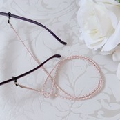 質の良い正絹の糸でつくられた手組みの紐は絹独自の艶やかな素材感、付け心地はとても軽やかで、肩こりや頭痛もちの方にも喜ばれています。また絹はお肌や衣類に優しい素材で知られています。特にこの紐はやわらかく作っているので、敏感肌の方にもお薦めしたい丸組のグラスコードです。