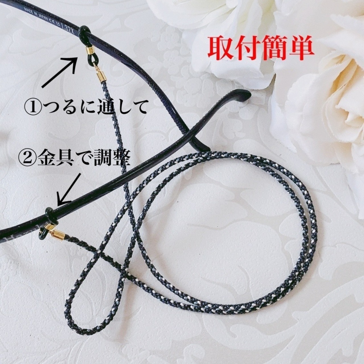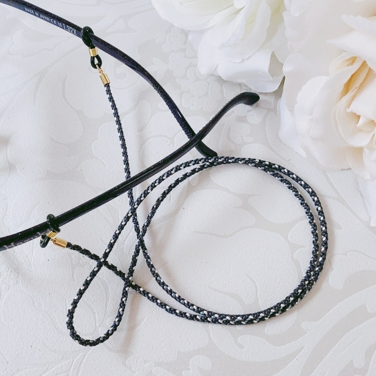 丁寧に手組みされた組紐が、メガネを優しく飾ります。