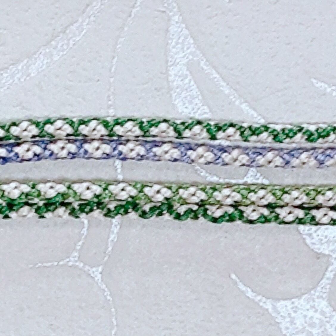 また絹はお肌や衣類に優しい素材で知られています。特にこの紐はやわらかく作っているので、敏感肌の方にもお薦めしたい丸組のグラスコードです。