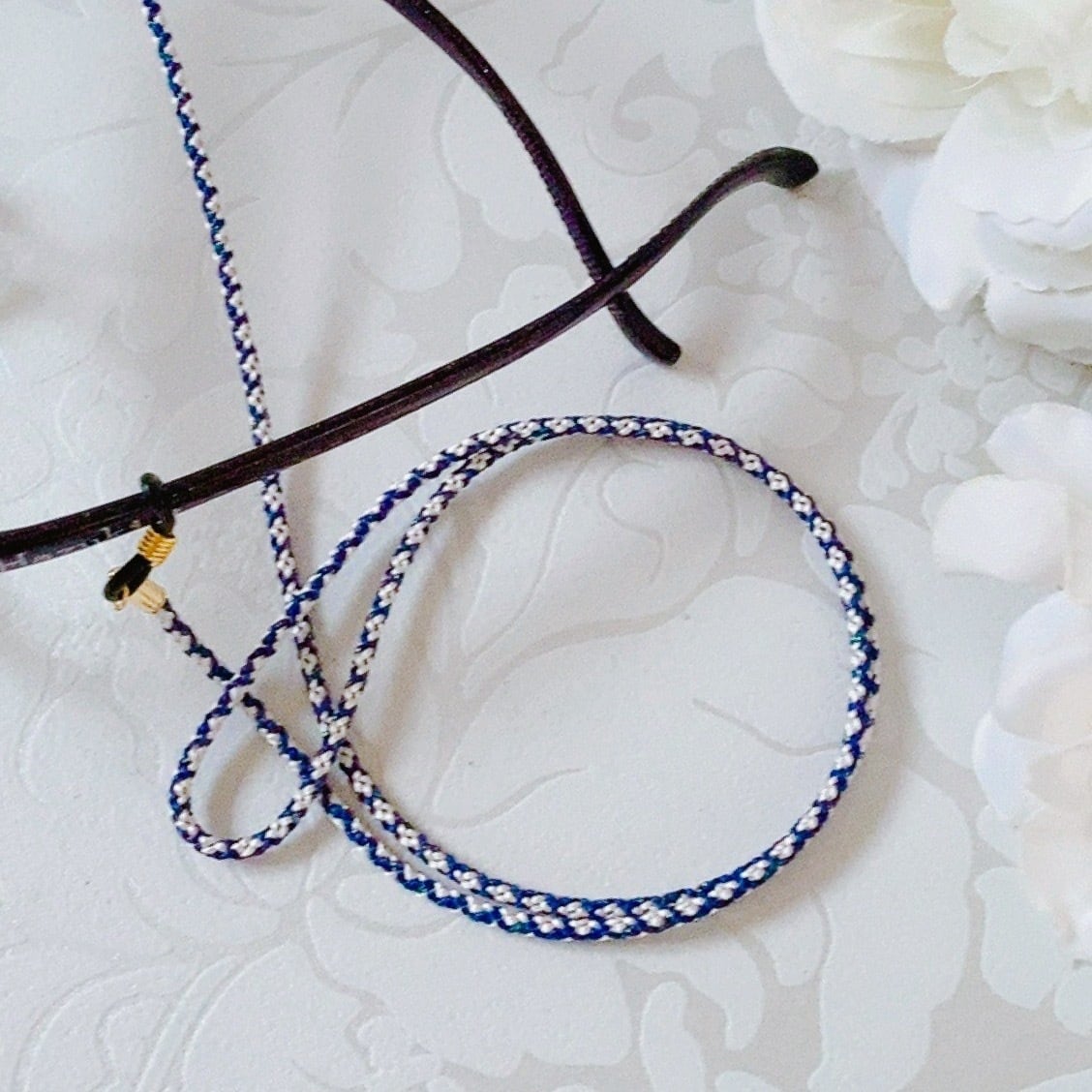 メガネチェーンを伝統工芸である組紐(くみひも)の技術で仕上げました。
