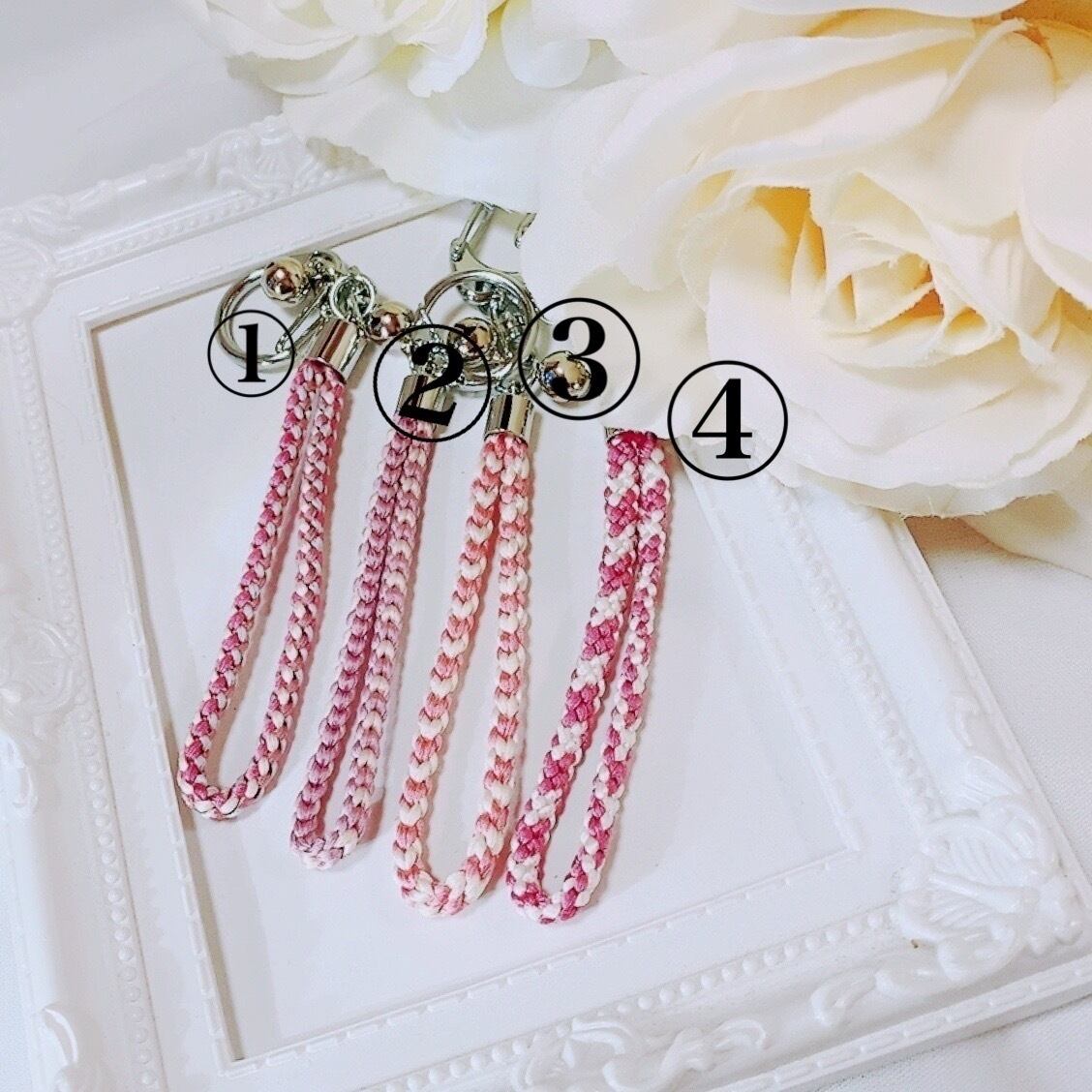 1、長さ:12.5センチ組紐部分7センチ 色:ピンク、薄ピンク、グレー、白