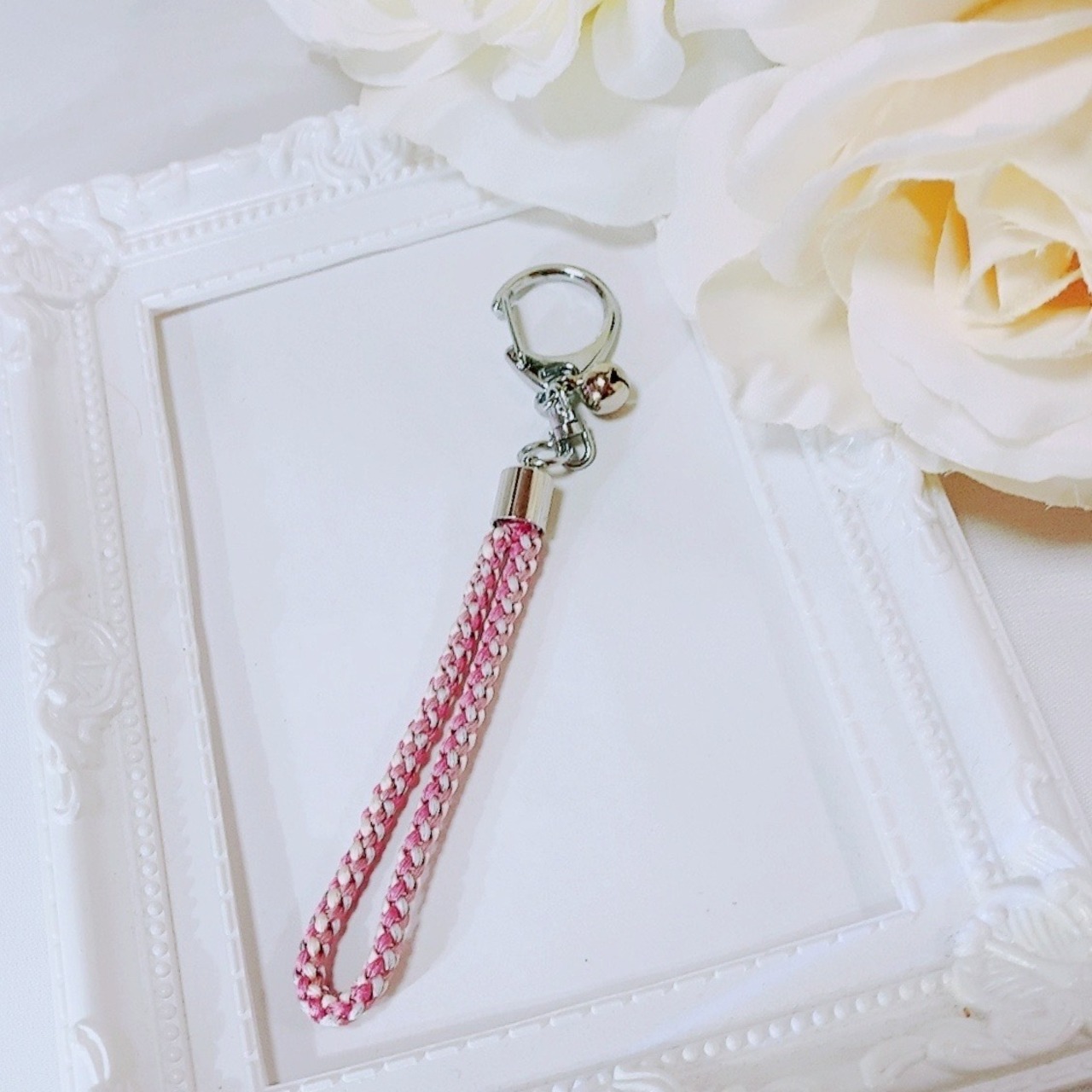 このキーホルダーは小さなアクセントとして使われることが多く、バッグやキーケースなどに取り付けられるとおしゃれなポイントになります。ピンク系のカラーバリエーションは、女性らしさや優しさを引き立ててくれます。