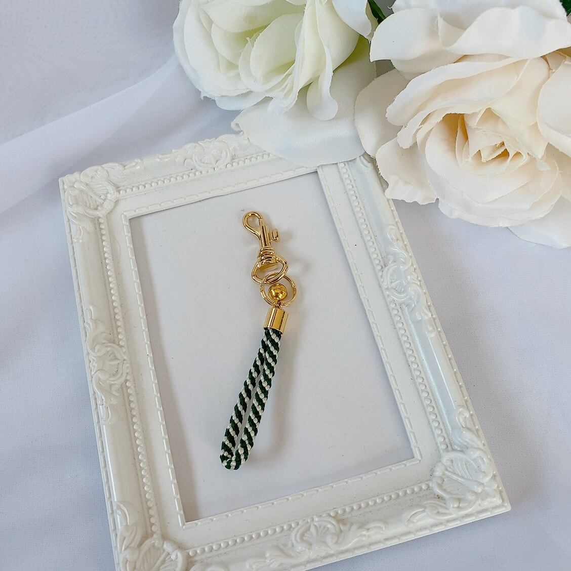 1、長さ:10,5センチ組紐部分5センチ 色:緑・生成り<br>
