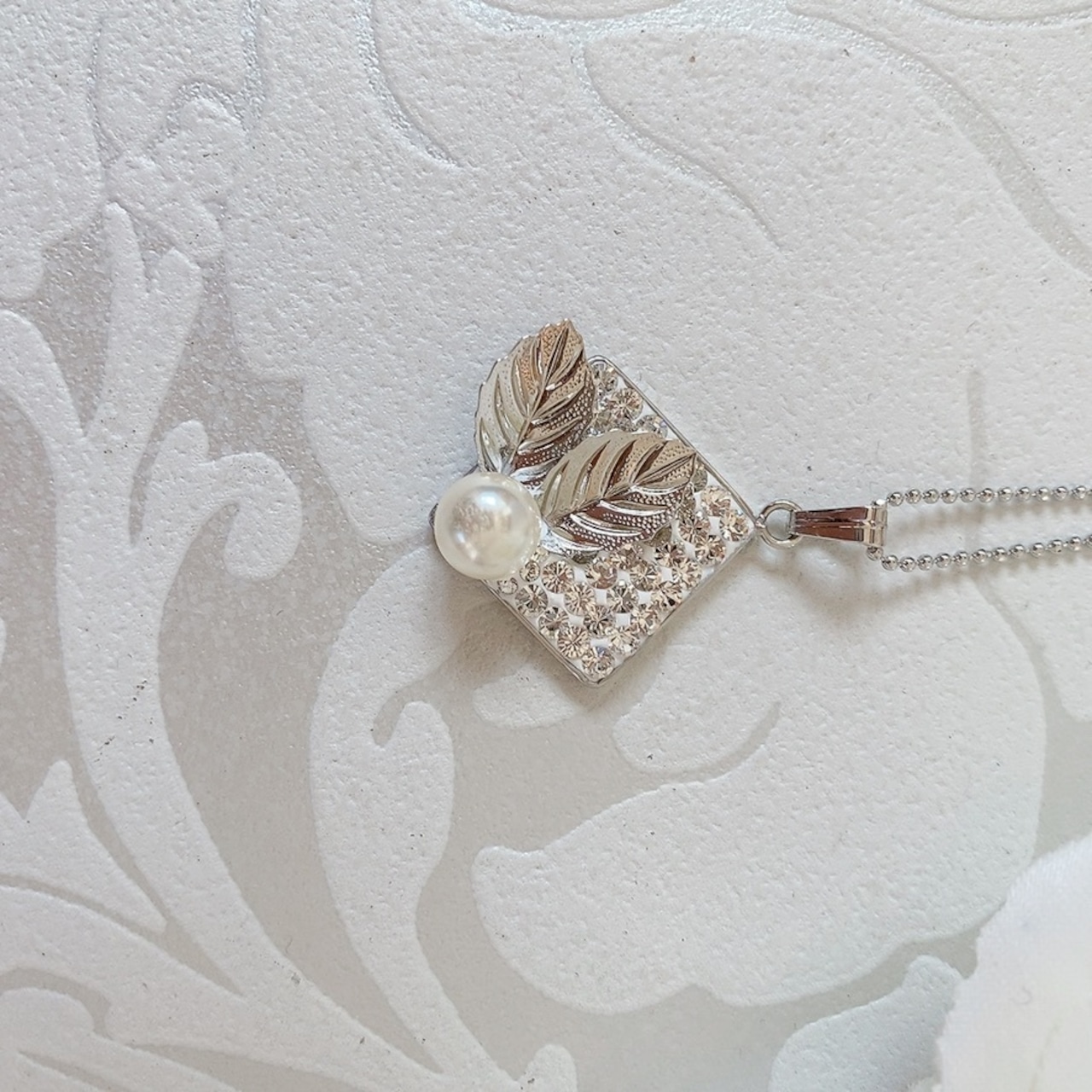 シンプルでありながらも洗練された輝きを放つ、パールとクリスタルのネックレス。