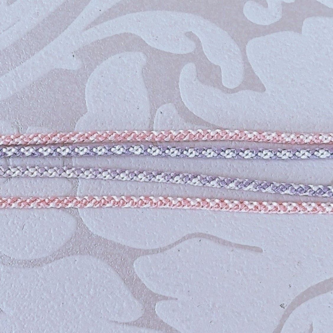 組み紐がパープルとピンクのぼかし糸で彩られており、個性的なデザインが魅力です。絶妙な色使いが、普段のコーディネートにさりげないアクセントをプラスしてくれます。