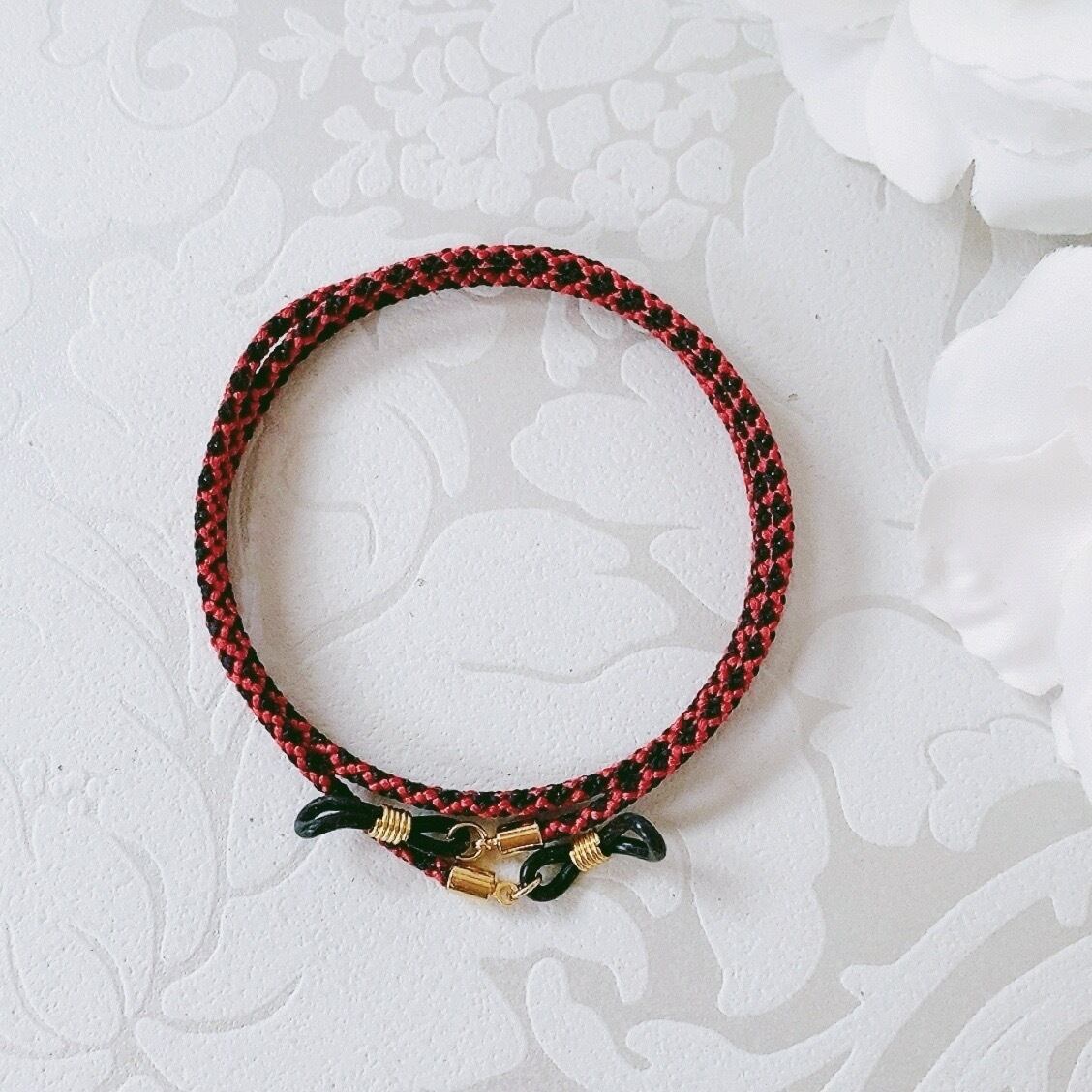 メガネチェーンを伝統工芸である組紐(くみひも)の技術で仕上げました。
