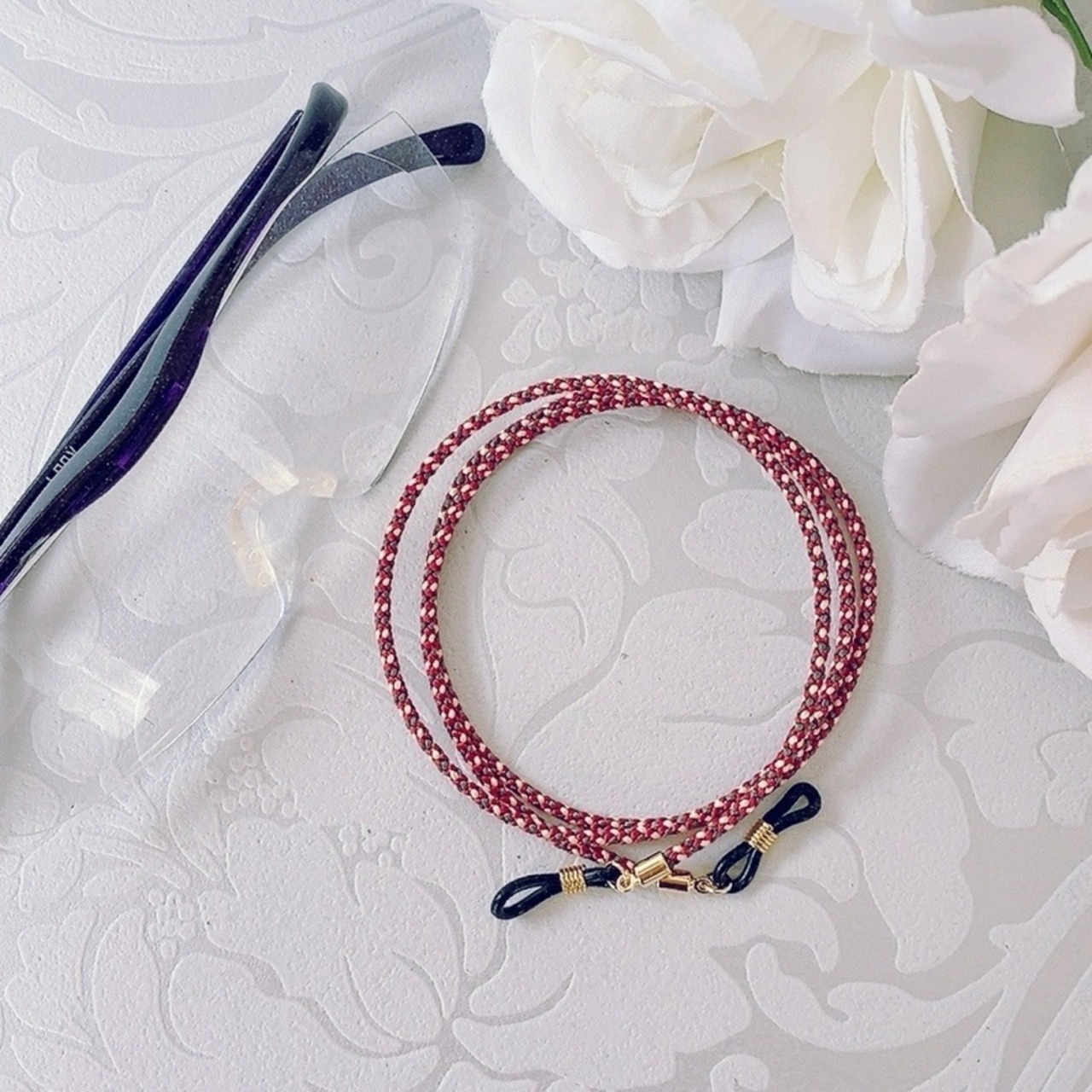 メガネチェーンを伝統工芸である組紐(くみひも)の技術で仕上げました。